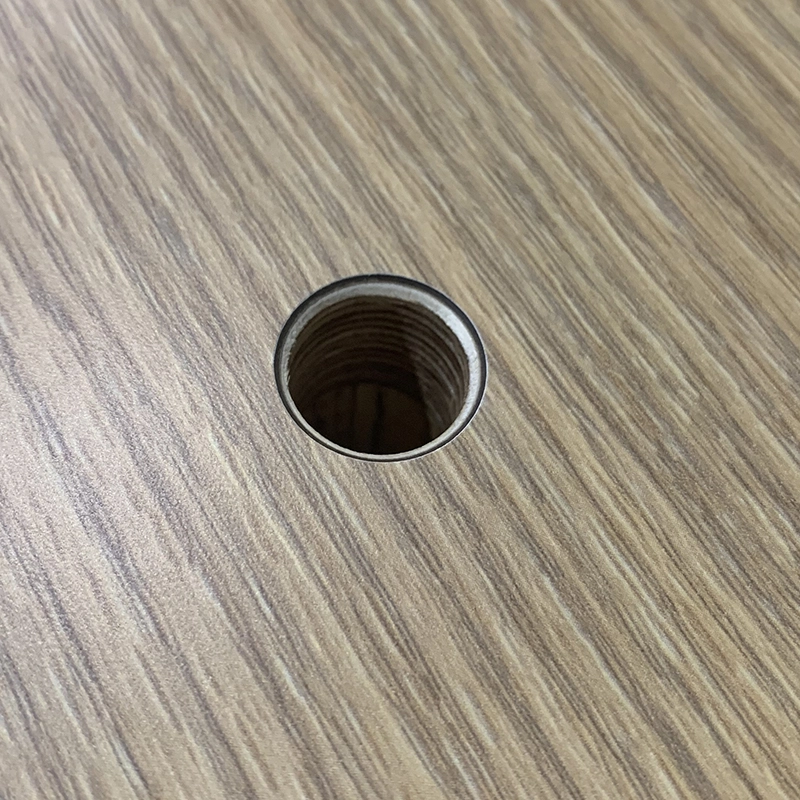 Current standard myWall panels are constructed with Parawood (Malaysian Oak) and includes holes on the panel front. Each panel unit is hung using aluminum French cleat wall brackets.