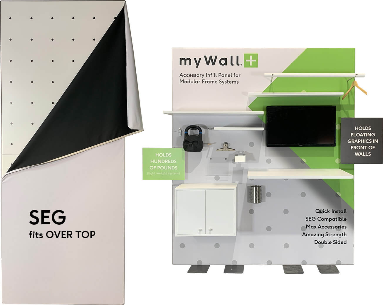 Trade show professionals, get ready to revolutionize the way you design your booths and displays. Meet myWall+, the innovative pegwall panel that is seamlessly compatible and purpose-built to transform the trade show industry. This groundbreaking system of interlocking infill panels offers unparalleled flexibility, durability, and strength, making it the ultimate solution for creating stunning and memorable exhibits customized to your functional needs.